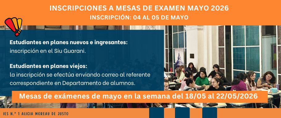 MESA DE EXÁMENES DE MAYO: Inscripción: 4 y 5 de mayo / Exámenes: semana del 18/5 al 22/5